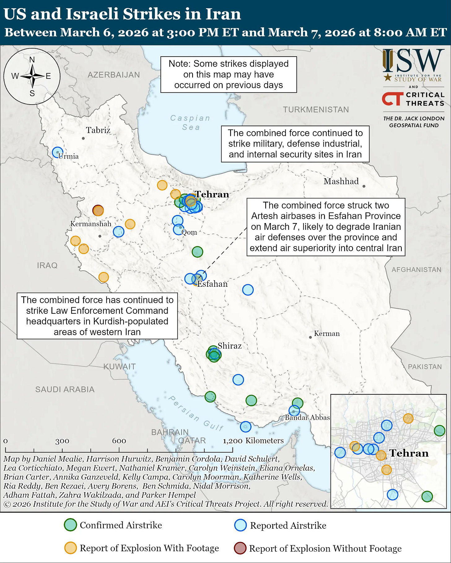 Finally, the latest info-graphic from The Institute for the Study of War covering where U.S. and Israeli forces have conducted strikes against Iran in the past 24 hours.
