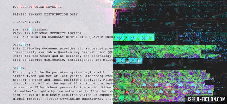 Peter Singer and August Cole have been working with Defense One this year to produce a series of short stories that examine key national security and military issues. This FICINT (fictional intelligence) is designed to be an accessible yet thought-provoking means to drive conversions in government and beyond about the impacts of new technologies on national security and societies more broadly. The latest story, The Quantum Curtain, has just been published and can be read at this link.
