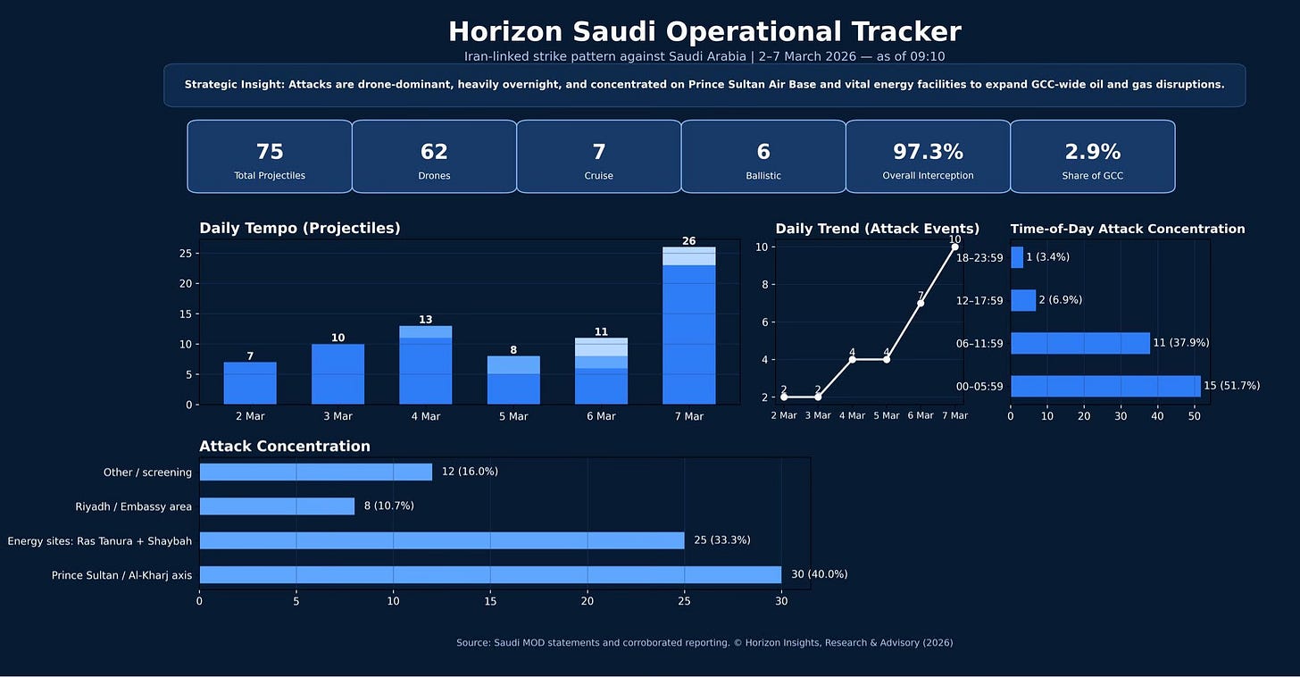 Next, is the update from Saudi Arabia that contains similar data. Attacks on Saudi Arabia are an order of magnitude lower than those in UAE. However, just a few well placed drones and missiles hitting oil production facilities can reverberate around the world.