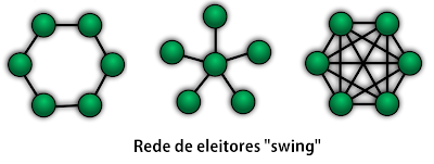 Obviamente que a estrutura em rede de conexões sociais pode favorecer qualquer dos dois candidatos dependendo da opção dos primeiros "nós" a mudarem de status (de "indeciso" para "decidido"). Mas meu argumento é que os dois efeitos acima contribuiriam para que esse voto fosse em favor do candidato do PSDB, de modo que as redes de indecisos fizessem um "swing" majoritariamente em favor dele.
